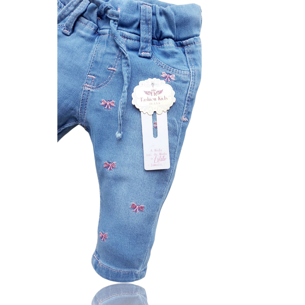 Calça de Bebê Menina Jeans Infantil Bordada Laço Rosa P M G Maravilhosa