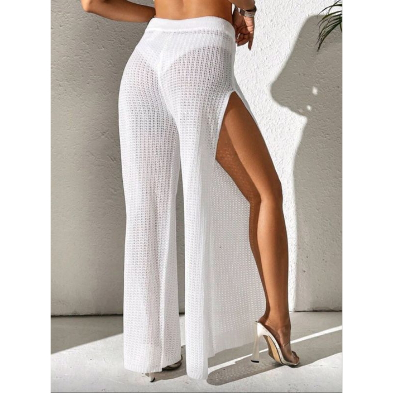Calça de praia feminina, calça de praia branca, calça saída de praia, saída de praia vazada, saída de praia com fenda