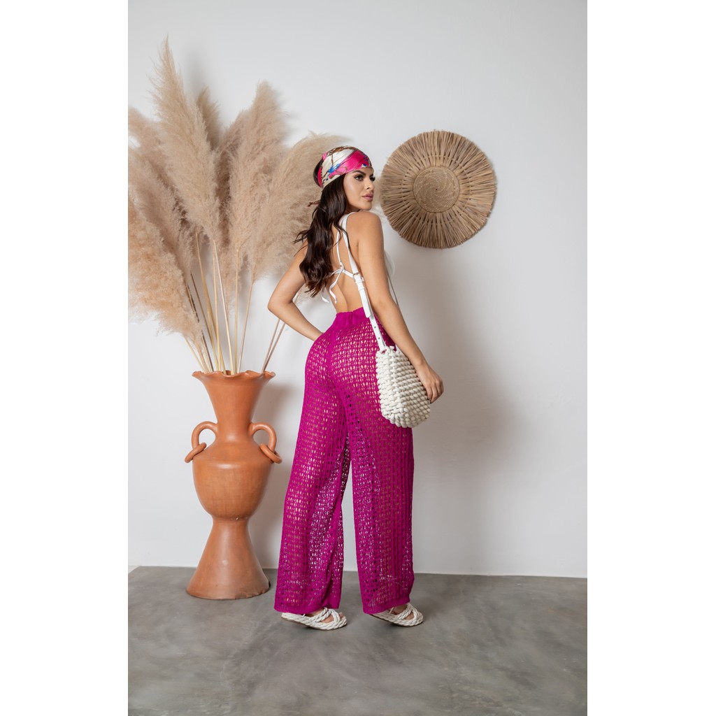 Calça De Praia Feminina Croche Tricot Pantalona Saida Verão