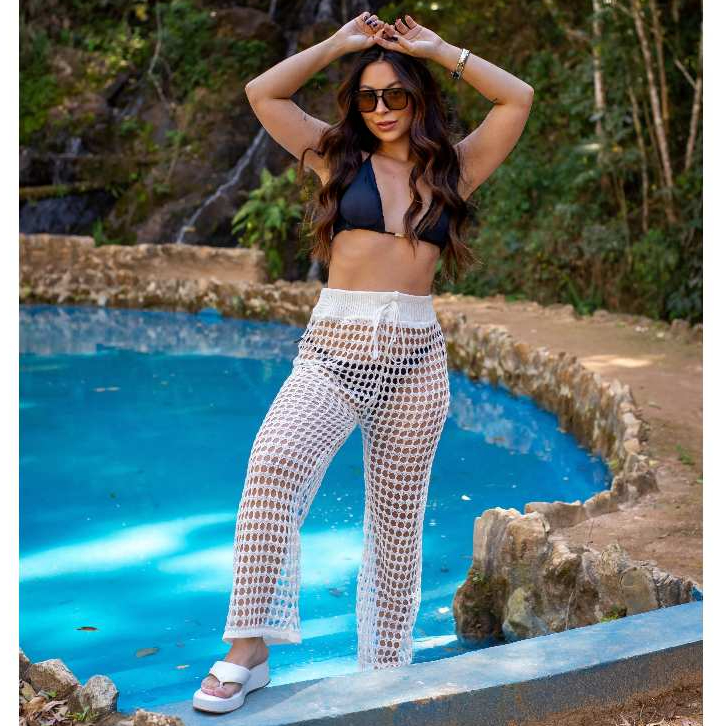 🌴 Calça Saída de Praia Telada Feminina – Estilo Fashion e Conforto Aposte no look que é tendência absoluta neste verão! A calça saída de praia em tela é perfeita para compor produções estilosas e despojadas, garantindo conforto e muito charme. Com design moderno e tecido leve, ela é ideal para usar por cima do biquíni ou maiô, sendo a escolha certa para dias de piscina, praia ou até mesmo em viagens. ✨ Detalhes do Produto: Estilo: Saída de praia em tela (vazada) Comprimento: 100cm Cintura: 84cm (circunferência) Quadril: 88cm (circunferência) Modelagem confortável com cós ajustável Veste do 36 ao 50 P/M: 36 ao 42 G/GG: 44 ao 50 ✅ Destaques: Leve e arejada Tendência beachwear 2025 Combina com diversos modelos de biquínis e maiôs Ideal para praia, piscina, resorts e passeios