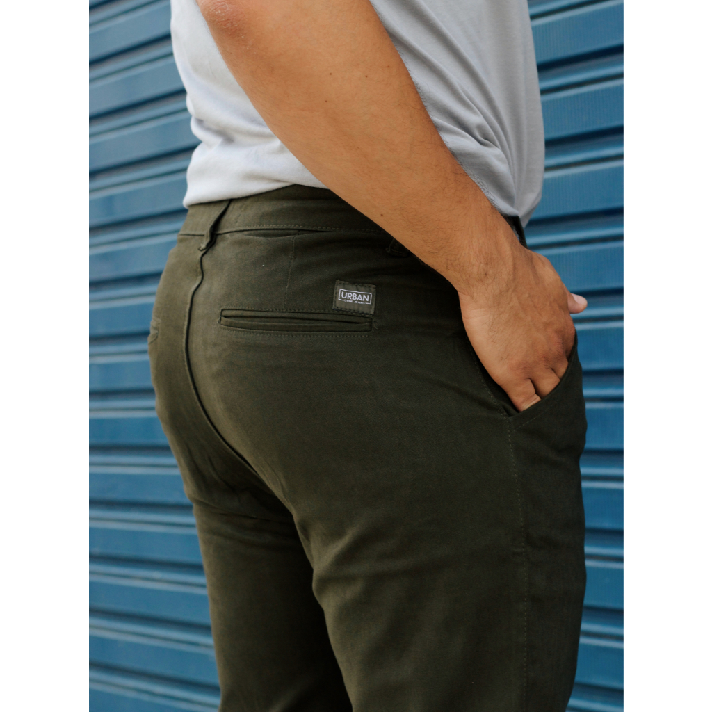 Calça de Sarja Premium Verde Militar Masculina Slim Fit com Lycra Calca jeans