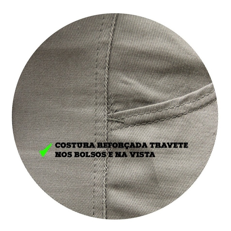 Calças confeccionadas com Costuras Duplas reforçadas. * Contém 2 bolsos frontais com acabamentos por dentro,1 bolsos traseiro e 1 na perna com ponto de travetes. * Calça com Elástico e Cordão para melhor ajuste no seu corpo * Tabela de medidas se encontra na foto do anúncio. CORES: - Preto TAMANHOS: P= 36-38 M= 40-42 G= 44-46 GG= 48-50 EG= 52/56 - Exemplo de como utilizar as medidas: Tamanho P - equivale ao número 36, esticando o elástico veste até o número 38. Caso sua medida de calça seja justamente ou um pouco acima do número 38, sugerimos o Tamanho M para proporcionar mais conforto, pois a calça também contém 1 cordão embutido junto com o elástico para amarração e ajuste. ** Siga este exemplo para as demais medidas.** INDICAÇÕES: - CALÇAS para produção de industrias, metalúrgicas, oficinas mecânicas, terminais de carga, construção civil, zelador condomínios, serviços de limpeza, pintor, serralheiro e jardineiro etc. PROFISSIONALISMO & CONFIANÇA