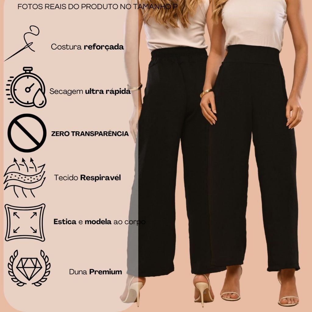 Calça Duna Pantalona Cintura Alta Soltinha Casual Alta Elasticidade P ao GG Calca Natal Social