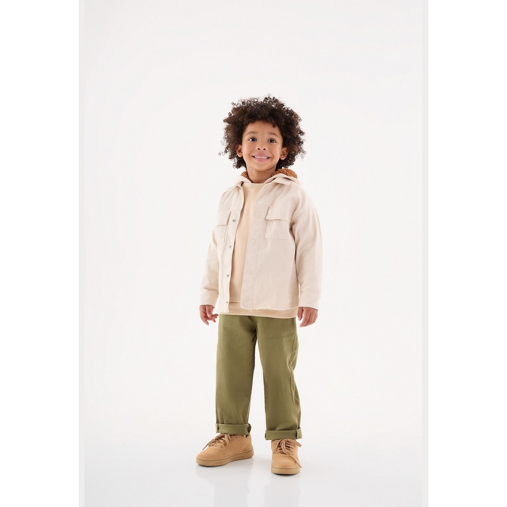 Calça infantil para meninos, confeccionada em sarja com elastano. Possui bolsos traseiros e laterais, nos tamanhos 1, 2 e 3, a braguilha é falsa, enquanto nos demais tamanhos, a braguilha é funcional com zíper. Além disso, possui fechamento por botão na cintura e as presilhas para passagem de cinto e efeito lavanderia, que é um processo de lavagem que cria uma variedade de efeitos visuais e texturas.Tecido: SarjaComposição: 98% Algodão 2% ElastanoModelagem: JustaComprimento: LongoForro: NãoCintura: MédiaFechamento: Botão