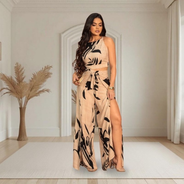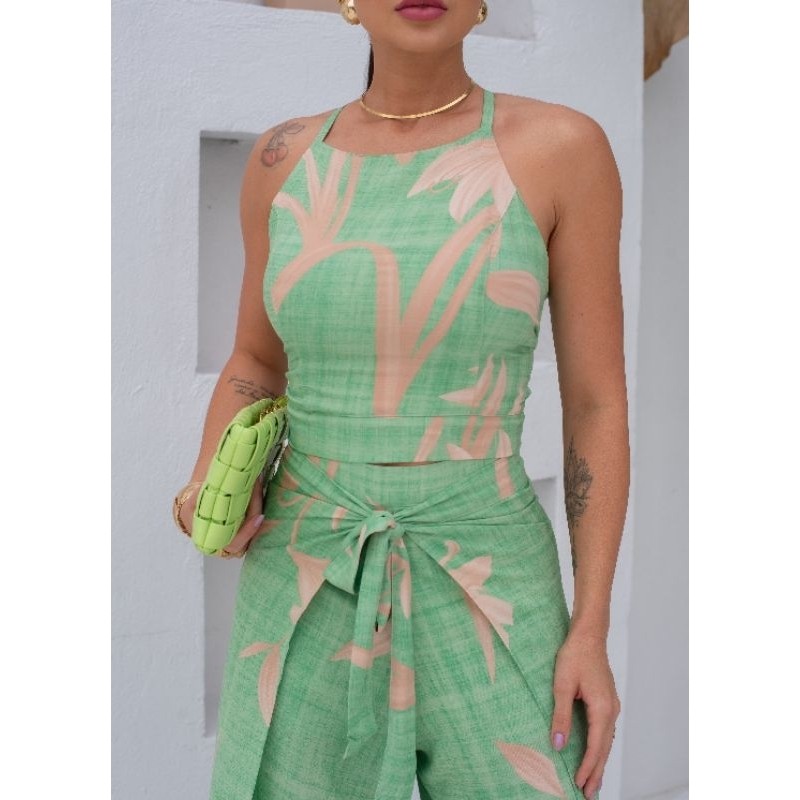 Atenção : Conjunto Tamanho Único Veste Manequim Do 36 ao 42 . Informações Sobre o Conjunto : Tecido: Viscolinho Modelo: Calça e Cropped Possui Bolso: Não Possui Bojo : Sim Possui Elastano: Não Observação: O conjunto é composto por duas peças, calça e cropped . Detalhe Especial Cropped : Cropped Alça Possui Abertura Nas Costa Com Amarração . Medidas Do Cropped : Busto 92cm / Comprimento 36cm Cropped Tamanho Único Veste Manequim Do 36 ao 42 . Observação: Todas as medidas são sem esticar e pode ocorrer variação de 1-2 cm por peça. Detalhe Especial Calça : Calça Pantalona Envelope Com Amarração Nas Laterais . Medidas Da Calça : Comprimento 107cm Calça Tamanho Único Veste Manequim Do 36 ao 42 .