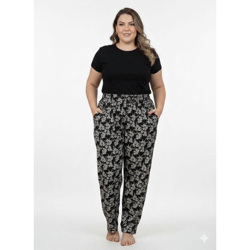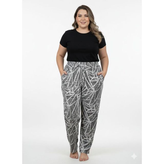 Calça Estampado de Malha fria Plus Size(EG) Soltinho, Leve, Fresquinho Com Bolsos, Cintura de Elástico