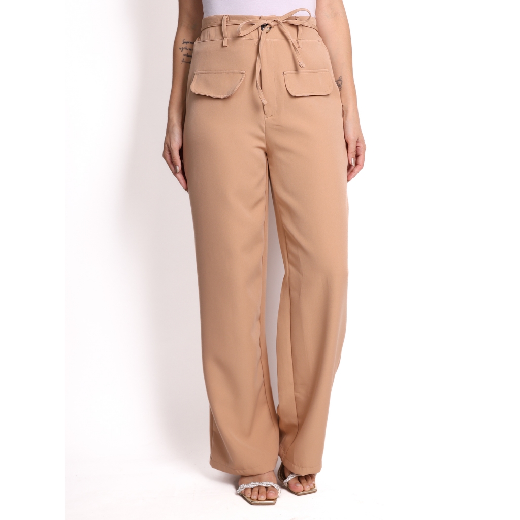 Modelagem Pantalona que Alonga a Silhueta:Esta calça possui um corte pantalona impecável que proporciona um efeito visual de pernas mais longas e silhueta alongada. O design de pernas largas oferece sofisticação e um movimento fluido a cada passo, ideal para um visual imponente. Conforto Máximo com Elástico na Cintura:Diferente das calças rígidas, este modelo conta com elástico na parte posterior da cintura, garantindo um ajuste perfeito e confortável ao corpo durante todo o dia. Adapta-se perfeitamente às curvas sem apertar, unindo estilo e bem-estar. Detalhes Exclusivos: Bolsos com Lapela e Amarração:O diferencial desta peça está nos bolsos frontais decorativos com lapela e no detalhe de amarração na cintura, que adicionam um toque de charme e modernidade. É a peça-chave para quem busca um look diferenciado e cheio de personalidade. Tecido Alfaiataria Premium de Alta Qualidade:Confeccionada em tecido de alfaiataria selecionado, a calça possui excelente caimento e não fica transparente. O material é resistente, mantém a cor vibrante e não amassa facilmente, sendo perfeito para manter a elegância do início ao fim do dia. Versatilidade "Business Casual" para o Dia a Dia:Uma peça extremamente versátil que transita facilmente entre o "look office" com salto e camisa, até um visual mais descontraído com tênis e cropped. Perfeita para reuniões de trabalho, jantares ou eventos sociais que exigem um toque de classe. Tamanho P M G GG ------- Tamanho P veste 36-38 * Cintura : 72CM Quadril : 90CM Comprimento : 108CM ------- Tamanho M veste 38-40 * Cintura : 74CM Quadril : 92CM Comprimento : 109CM ------- Tamanho G veste 40-42 * Cintura :76CM Quadril : 94CM Comprimento : 110CM ------- Tamanho GG veste 42-44 * Cintura :78CM Quadril : 96CM Comprimento : 111CM COM ELASTICO NAS COSTAS VEM CINTO DO TECIDO SEM BOLSOS