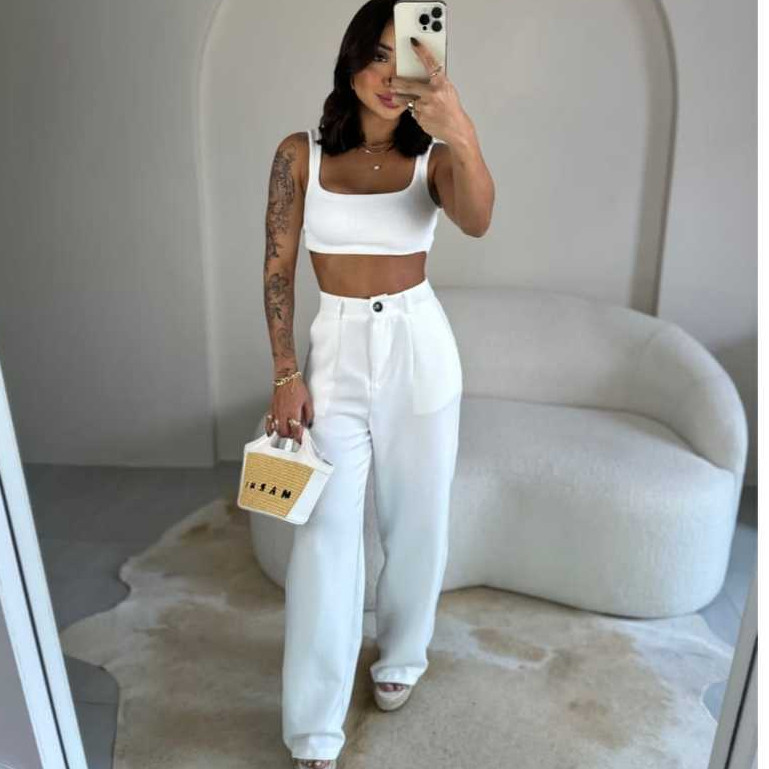 Calça Feminina Alfaiataria Moda Blogueira Social Moda Gringa Elegante Premium Tendência 2026