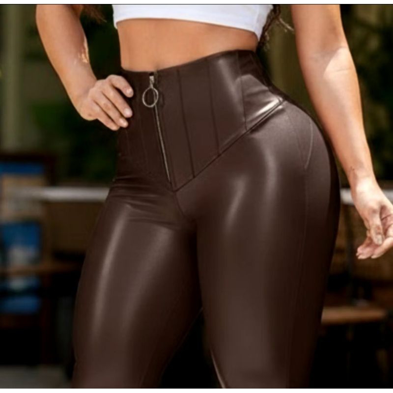 Calça Feminina Cintura Alta Modelo Chapa Barriga Com Zíper Frontal Tecido Cirre