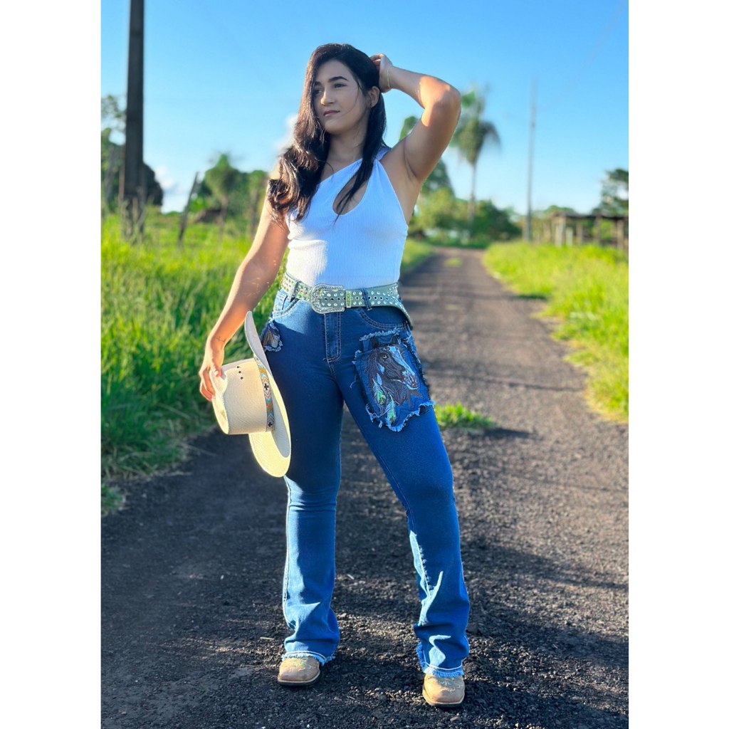 Calça feminina country Bordado em aplique