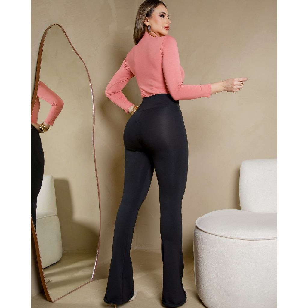 Calça Feminina Flare Bailarina Suplex Cintura Alta Boca De Sino Levanta Bumbum