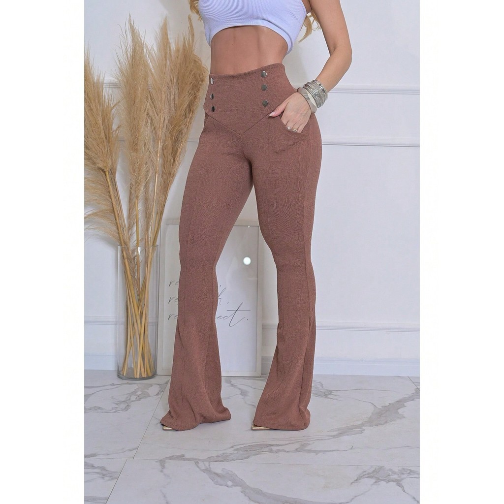 | Calça Feminina Flare Cintura Alta Boca Sino com Lycra Efeito Empin... este produto | R$ 97,50 | 25% | 4.9/5 | 5 |