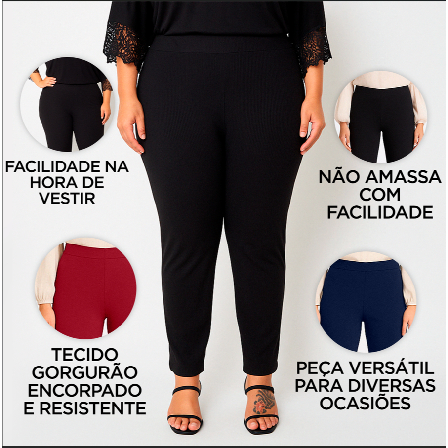 Calça Feminina Gorgurão Gancho Alto com elástico