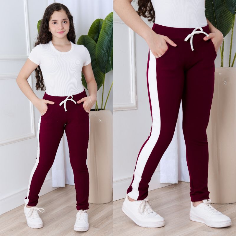 Medida de calça TAM: Comprimento Cintura 14 90 30 12 84 28 10 80 27 8 76 24 Calça feminina infantil confeccionada em tecido malha crepe, que oferece conforto e elasticidade, proporcionando liberdade de movimento para as pequenas. O modelo conta com listras laterais que adicionam um toque moderno e esportivo à peça, tornando-a ideal tanto para o dia a dia quanto para momentos de lazer. O tecido malha crepe é suave ao toque e resistente, além de ser de fácil cuidado. A calça possui um ajuste confortável na cintura, com elástico que garante praticidade e conforto durante o uso. Versátil e cheia de estilo, é a escolha perfeita para compor looks cheios de personalidade.