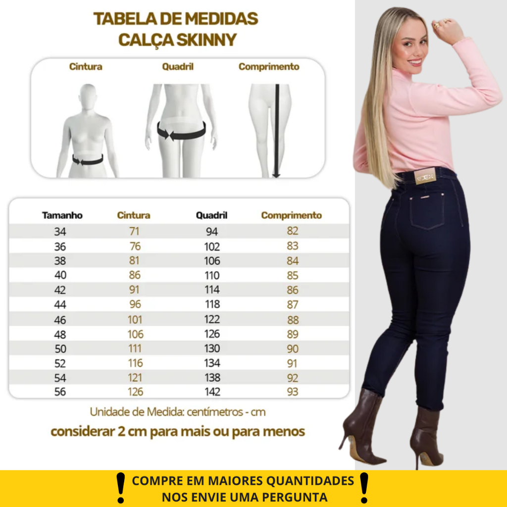 Calça Feminina Jeans Jogger A calça feminina jeans modeladora Edex Jeans possui um recorte diferente e moderno. Ela une o design cigarrete skinny jeans, com detalhes da modelagem jogger, incluindo elástico no cós e muito elastano na composição. Essa peça foi pensada para a praticidade, trazendo a você um tecido em tom azul claro, bonito e fácil de combinar. O jeans ideal para uma rotina agitada. Modelagem Ajustada A modelagem ajustada com elástico no cós e a tecnologia modeladora dá a essa calça de marca a melhor definição entre estilo e qualidade para os seus dias. Ela é feita em material super macio, incluindo ainda bolsos funcionais, detalhes de elástico no cós, cintura alta e bastante lycra na composição. Essa calça é feita para você curtir cada momento com estilo e sem qualquer preocupação. Elástico no Cós O elástico no cós oferece a calça feminina jeans modeladora Edex uma opção perfeita entre design e praticidade. Ela se ajusta confortavelmente nas pernas, quadril, cintura e bumbum, reduzindo visualmente alguns detalhes e aumentando o seu bumbum na medida certa! Tudo para você se sentir mais bonita, confiante e feminina ao mesmo tempo. Compre e descubra todas as possibilidades. Hora de Comprar! Comprar a calça feminina jeans cigarrete jogger em nosso site é ter a união perfeita entre um jeans de qualidade, original e de marca com uma entrega rápida, frete grátis e a melhor experiência de compra possível. Aqui, você tem estilo e opções variadas para a sua compra, além da garantira de uma roupa de marca, com a assinatura Edex Jeans. Pronto para envio Envio dentro de 24 Horas Oferecemos Produtos Originais Antes de fazer sua compra, confira nossa tabela de medidas! Tamanho X Cintura X Quadril 32 | 66 - 70 | 90 - 93 34 - PP | 71 - 75 | 94 - 98 36 - P | 76 - 80 | 102 - 105 38 - M | 81 - 85 | 106 - 109 40 - G | 86 - 90 | 110 - 113 42 - GG | 91 - 95 | 114 - 117 44 - EGG | 96 - 100 | 118 - 121 46 - G1 | 101 - 105 | 122 - 125 48 - G2 | 106 - 110 | 126 - 129 50 - G3 | 111 - 115 | 130 - 133 52 | 116 - 120 | 134 - 137 54 | 121 - 125 | 138 - 141 56 | 126 - 130 | 142 - 145 58 | 131 - 135 | 146 - 149 60 | 136 - 140 | 150 - 153 GARANTIA Não serviu? Entre em contato conosco para efetuar sua troca! Garantia de 7 dias após o recebimento do produto.