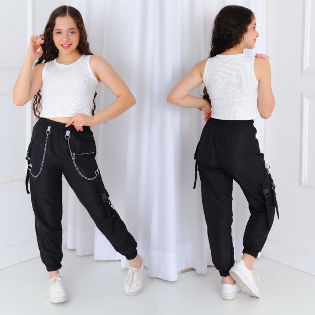 calça feminina juvenil jogger cargo tactel 4 bolsos calça juvenil unisex