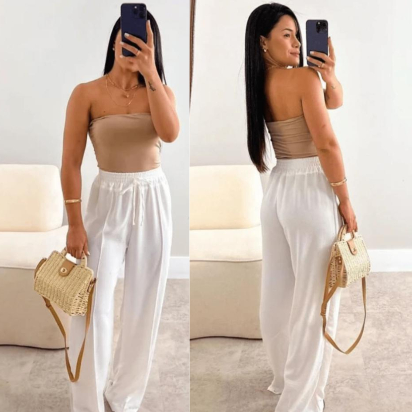Calça Feminina Pantalona Branco Wide Leg Duna Tendência Casual Conforto Moderna Estilosa Praia Linda