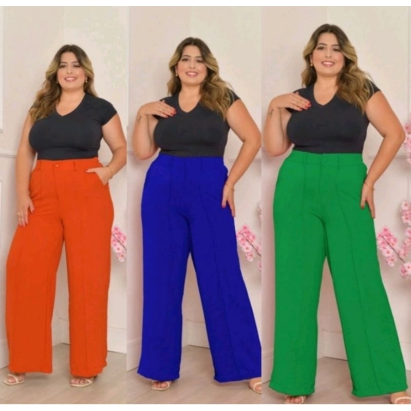 | Calça Pantalona Plus Size de Amarrar Duna Com Bolso Premium | R$ 39,99 | 43% | 4.7/5 | 1.2 mil |