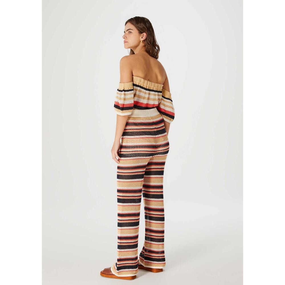 Calça Feminina Pantalona Listrada Em Tricô Hering