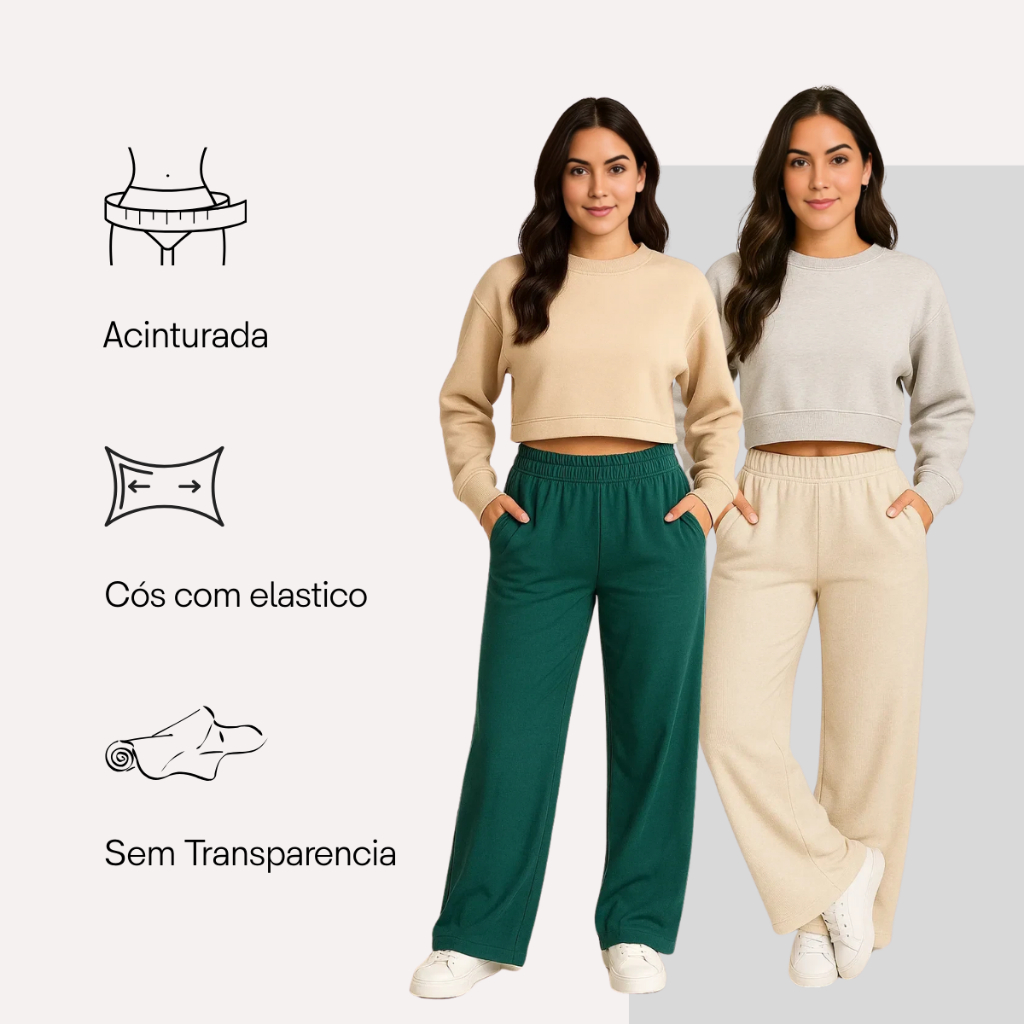 Calça Feminina Pantalona Moletom Moletinho Cintura Alta