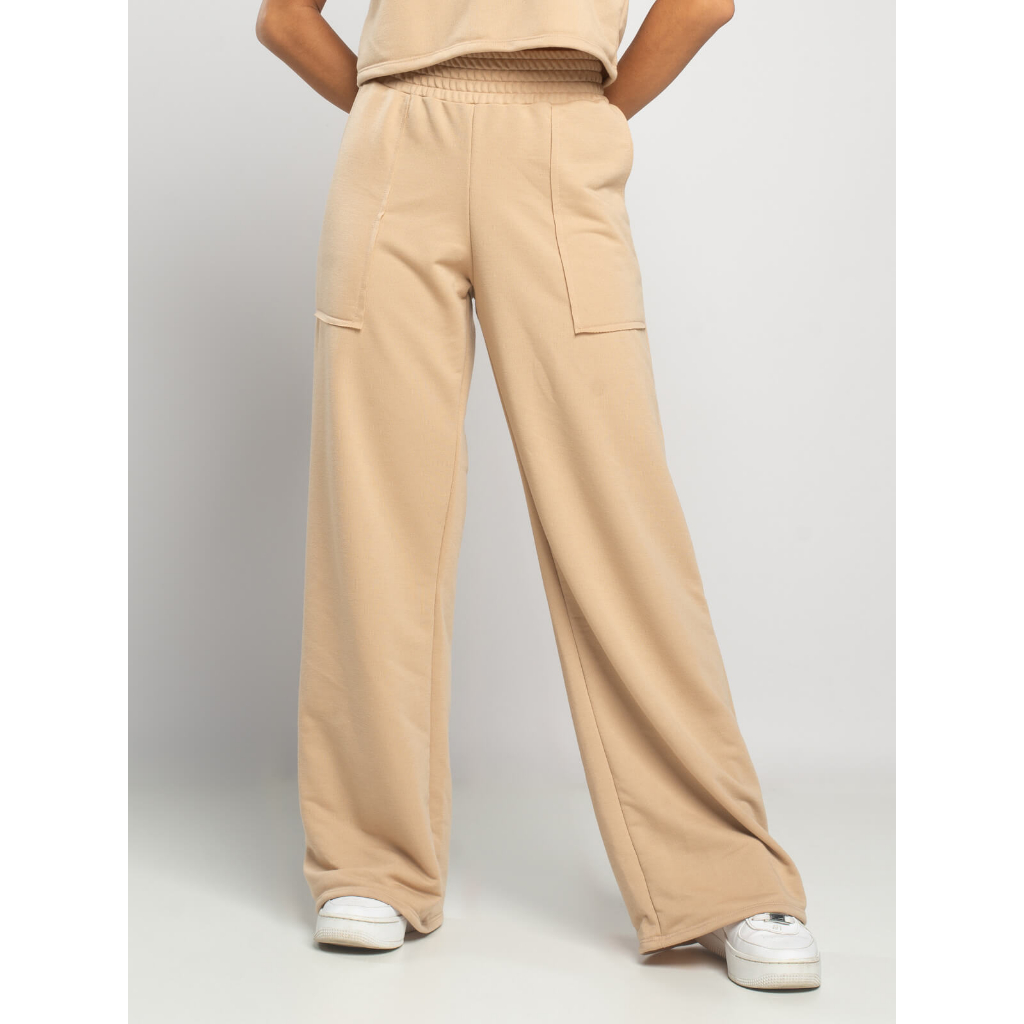 Calça Feminina Pantalona Wide Leg Moletinho Cintura Alta