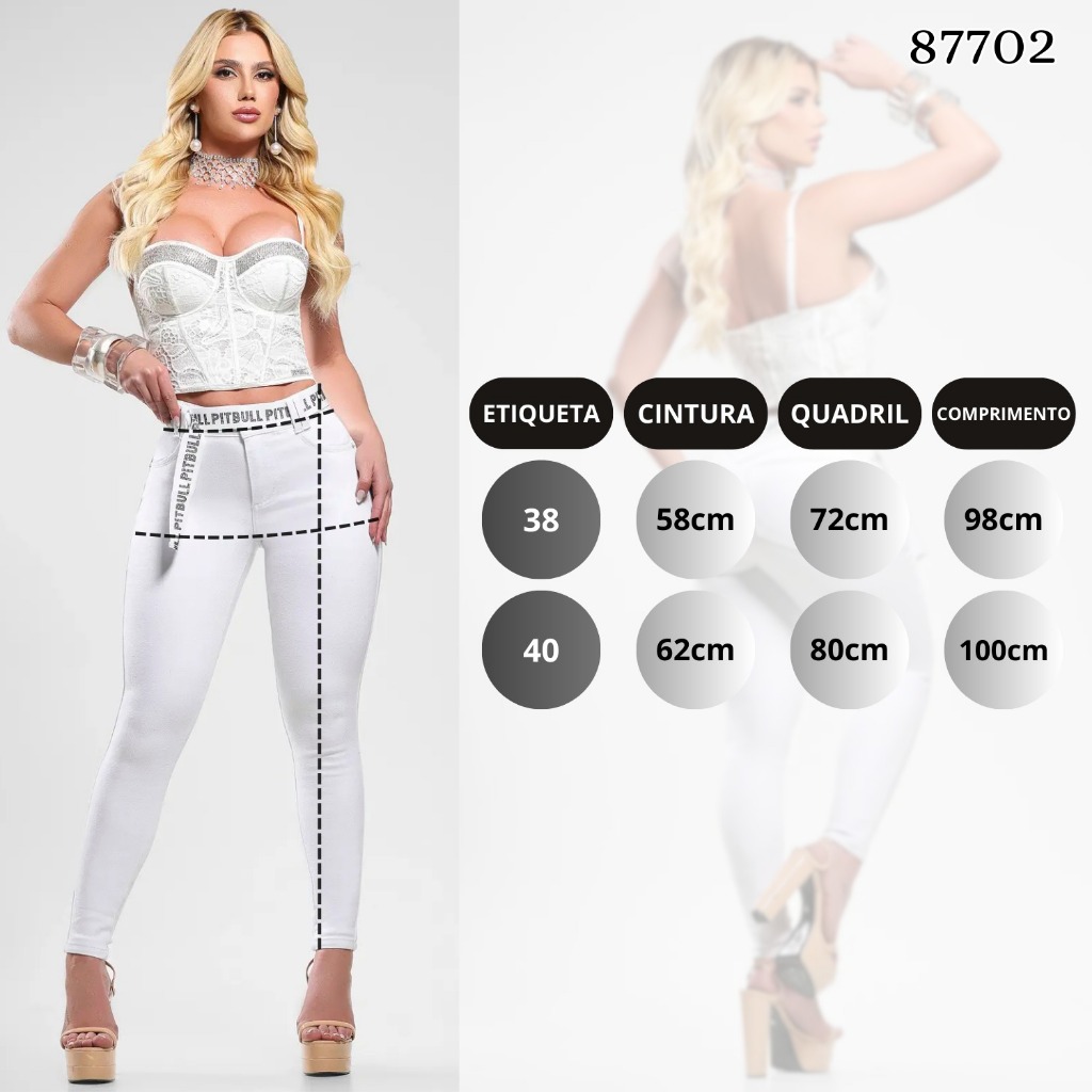 COMPRA 100% SEGURA. TODAS AS PEÇAS SÃO REVISADAS ANTES DO ENVIO. Está com dúvidas sobre o produto? Deixe sua pergunta no chat! Somos vendedores autorizados da Pit Bull Jeans há mais de 10 anos. Todas as peças são originais e acompanham nota fiscal. A calça hot pants foi desenvolvida para mulheres que buscam peças com apelo visual marcante e alto desempenho em modelagem. Com cintura super alta e cós estruturado com botão flexível, ela proporciona firmeza e realce imediato das curvas. O bojo Bundex, estrategicamente posicionado com volume superior, garante um efeito push-up natural, enquanto a pala traseira com pespontos reforça o design sofisticado e funcional da peça. Acompanha um cinto no mesmo tecido com fivela metálica e detalhe escrito, agregando ainda mais estilo e personalidade ao visual. ________________________________________________ DETALHES 87702 (Branca) – Composição do produto: 68% Algodão, 27% Poliéster, 3% Viscose, 2% Elastano – Modelagem hot pants com cintura alta: valoriza o abdômen e alonga a silhueta – Bojo Bundex com enchimento estratégico: elevação sutil dos glúteos com efeito natural – Botão flexível no cós: ajuste seguro e confortável – Passantes com 5,5 cm reforçados: estabilidade e durabilidade no uso diário – Bolsos traseiros com reforço: maior resistência sem abrir mão da estética – Zíper frontal branco: acabamento que harmoniza com a proposta estética – Bojo bundex removível: para maior suporte e modelagem do bumbum, oferecendo um ajuste ideal e adaptável ao estilo de cada mulher – Cor disponível: Branco ________________________________________________ DETALHES 87258: – Composição do produto: Principal: 63% Algodão, 32% Poliéster, 3% Viscose, 2% Elastano Forro: 53% Algodão, 43% Poliéster, 4% Elastano – Modelagem hot pants com cintura super alta: efeito alongado e silhueta bem definida – Cós estruturado com botão flexível: sustentação inteligente com conforto – Bojo bundex removível: para maior suporte e modelagem do bumbum, oferecendo um ajuste ideal e adaptável ao estilo de cada mulher – Pala traseira com 3 pespontos: reforço técnico que modela e embeleza – Bolsos traseiros moldados: encaixe anatômico que realça a forma – Braguilha com zíper personalizado: acabamento refinado com praticidade – Cinto incluso no mesmo tecido com fivela metálica e estampa: toque moderno e cheio de atitude – Costura reforçada nas pences e cós: durabilidade e acabamento impecável – Cor disponível: Azul Claro ________________________________________________ DETALHES 87694: – Composição do produto: 66% Algodão 30% Poliéster 2% Viscose 2% Elastano – Forro bolso: 100% Poliéster – Modelagem hot pants com cintura alta: estrutura firme com visual elegante – Bojo Bundex removível: para maior suporte e modelagem do bumbum, oferecendo um ajuste ideal e adaptável ao estilo de cada mulher – Cós com botão flexível: conforto com acabamento técnico – Zíper frontal caqui: detalhe sofisticado e discreto – Reforço nos bolsos traseiros e passantes: durabilidade e resistência – Cor disponível: Azul Claro ________________________________________________ DETALHES 87697: – Composição do produto: 51% Algodão, 26% Poliéster, 22% Liocel, 1% Elastano – Bojo bundex removível: para maior suporte e modelagem do bumbum, oferecendo um ajuste ideal e adaptável ao estilo de cada mulher; – Modelagem hot pants: cintura alta e caimento que alonga a silhueta – Cinto incluso com fivela metálica personalizada: acessório que valoriza a cintura e reforça a sofisticação da peça – Cós com botão flexível: praticidade e ajuste confortável – Passantes reforçados com 5,5 cm: resistência e acabamento técnico – Bolsos traseiros funcionais com reforço: utilidade aliada à estética refinada – Estrutura com elastano: mobilidade e recuperação da forma – Acabamento interno limpo: maior conforto no contato com a pele – Cor disponível: Azul Médio Sugerimos que confira o nosso guia de tamanhos para evitar devoluções.