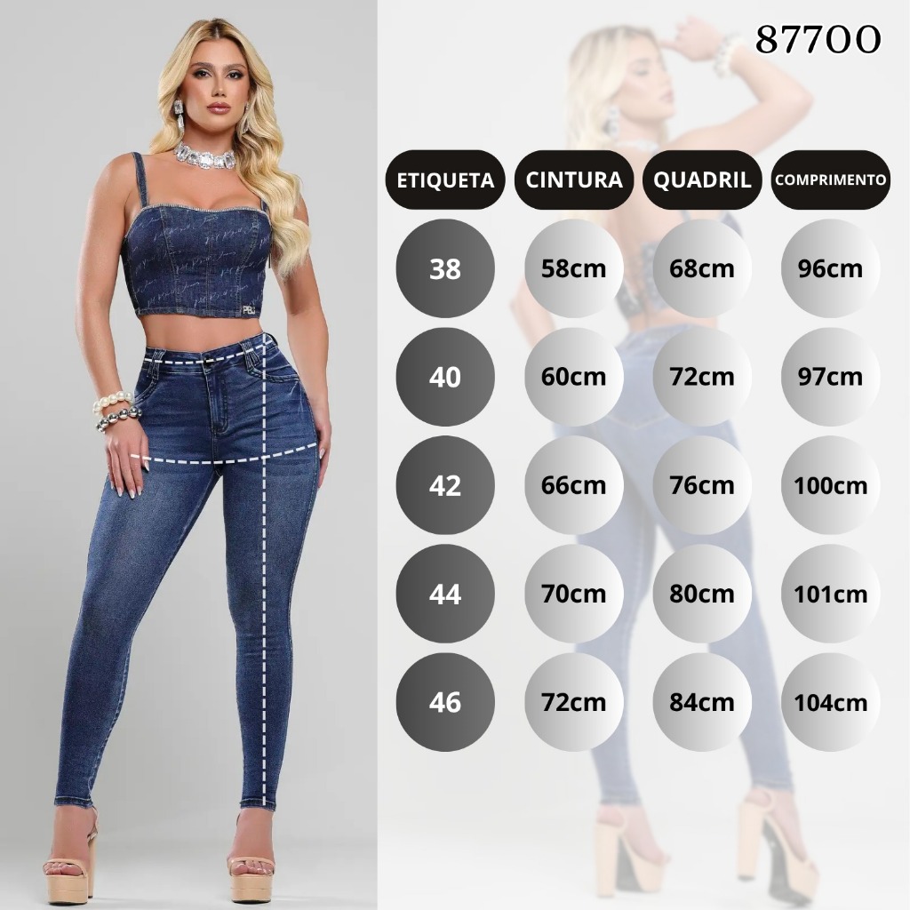 COMPRA 100% SEGURA. TODAS AS PEÇAS SÃO REVISADAS ANTES DO ENVIO. Está com dúvidas sobre o produto? deixe sua pergunta no chat! Somos vendedores autorizados da Pit Bull Jeans há mais de 10 anos. Todas as peças são originais e acompanham nota fiscal. Desenhada para mulheres que buscam elegância aliada à performance, esta calça skinny entrega um visual sofisticado com estrutura impecável. A tecnologia do bojo interno com bundex modela o bumbum com naturalidade, enquanto o cós com botão flexível garante conforto e ajuste seguro. Os recortes estratégicos valorizam as curvas, e a composição do tecido oferece sustentação com toque macio, resultando em uma peça que abraça o corpo com firmeza e liberdade. OBS: FORMA PEQUENA! - Bolsos traseiros funcionais – Modelagem skinny ajustada ao corpo: caimento perfeito com silhueta alongada – Cós com botão flexível: segurança e conforto no fechamento – Bojo Bundex Removível: Para maior suporte e modelagem do bumbum, oferecendo um ajuste ideal e adaptável ao estilo de cada mulher; – Estrutura com pences traseiras e bolsos bem posicionados: efeito anatômico e natural – Acabamento interno reforçado: durabilidade e estrutura da peça – Tecido encorpado com toque suave: sustentação com conforto térmico Composição: (84440) - 67% Algodão, 27,5% Poliéster, 2,5% Viscose, 3% Elastano. (86440) - 51% Algodão, 22% Liocel, 26% Poliéster, 1% Elastano (84402) - 53% Algodão, 43% Poliéster, 4% Elastano (84657) - 68% Algodão, 30% Poliéster, 2% Elastano Sugerimos que confira o nosso Guia de Tamanhos para evitar devoluções.