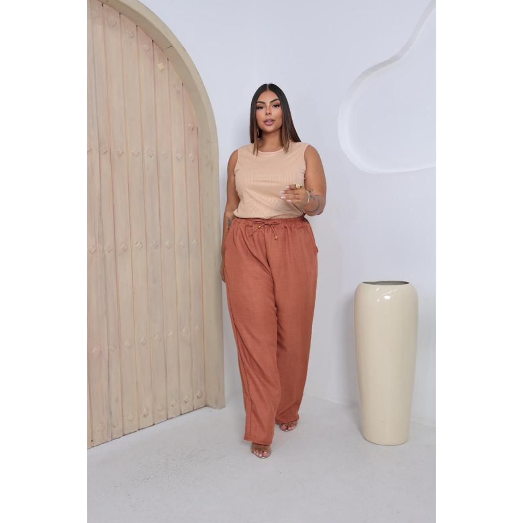 Calça Feminina Plus Size Pantalona Tecido Duna Linho Cintura Alta Moda Casual G1 ao G6