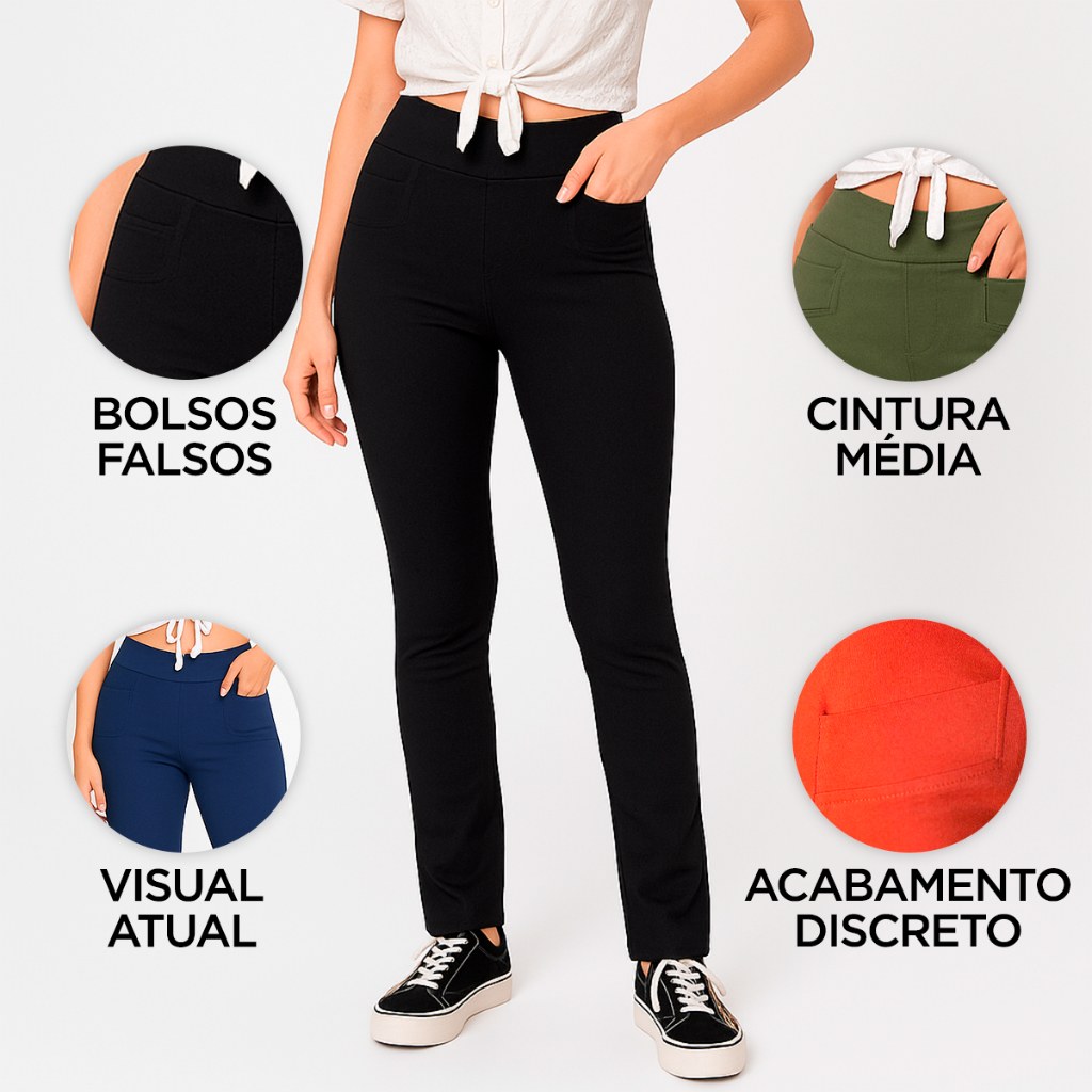 Calça Feminina Flare Bengaline Sarjada – Elegância e Conforto 𝐀𝐭𝐞𝐧𝐜̧𝐚̃𝐨: 𝐂𝐚𝐥𝐜̧𝐚 𝐜𝐨𝐦 𝐟𝐨𝐫𝐦𝐚 𝐩𝐞𝐪𝐮𝐞𝐧𝐚, 𝐜𝐨𝐧𝐬𝐮𝐥𝐭𝐞 𝐚 𝐭𝐚𝐛𝐞𝐥𝐚 𝐝𝐞 𝐦𝐞𝐝𝐢𝐝𝐚𝐬 𝐨𝐮 𝐜𝐨𝐦𝐩𝐫𝐞 𝐮𝐦 𝐧𝐮𝐦𝐞𝐫𝐨 𝐦𝐚𝐢𝐨𝐫. 🚚 𝗘𝗡𝗩𝗜𝗢 𝗜𝗠𝗘𝗗𝗜𝗔𝗧𝗢 𝗘𝗠 𝗔𝗧𝗘́ 𝟭𝟮𝗛 𝗨́𝗧𝗘𝗜𝗦 Realce sua feminilidade com a nossa calça flare, confeccionada em tecido Bengaline (77% viscose, 20% poliamida, 3% elastano) que garante um ajuste perfeito e liberdade de movimento. Com cintura média, modelagem flare e bolsos falsos com acabamento discreto, ela é a escolha ideal para looks modernos e sofisticados. ✅ Benefícios: ✔ Conforto excepcional: Combinação de viscose e elastano para um caimento que valoriza suas curvas. ✔ Estilo contemporâneo: Modelagem flare e detalhes elegantes para um visual atual. ✔ Versatilidade de cores: Disponível em Preta, Marinho, Vinho, Verde e Ferrugem. ✔ Qualidade Premium: Produzida no Brasil com materiais de alta performance. ✅ Especificações: ✔ Tamanhos: P ao GG (Modelo veste tamanho M) ✔ Medidas da Modelo: Altura: 1,78m | Busto: 83cm | Cintura: 65cm | Quadril: 97cm ✅Cuidados: ✔ Lavar até 30ºC (ou conforme etiqueta) ✔ Não usar alvejante à base de cloro ✔ Passar até 110ºC ✔ Limpeza a seco profissional ✔Observação: As cores podem variar conforme a iluminação das fotos. Renove seu guarda-roupa com estilo e praticidade. Adquira já a sua Calça Feminina Flare Bengaline Sarjada! ✅Qualquer dúvida estamos à disposição no chat.