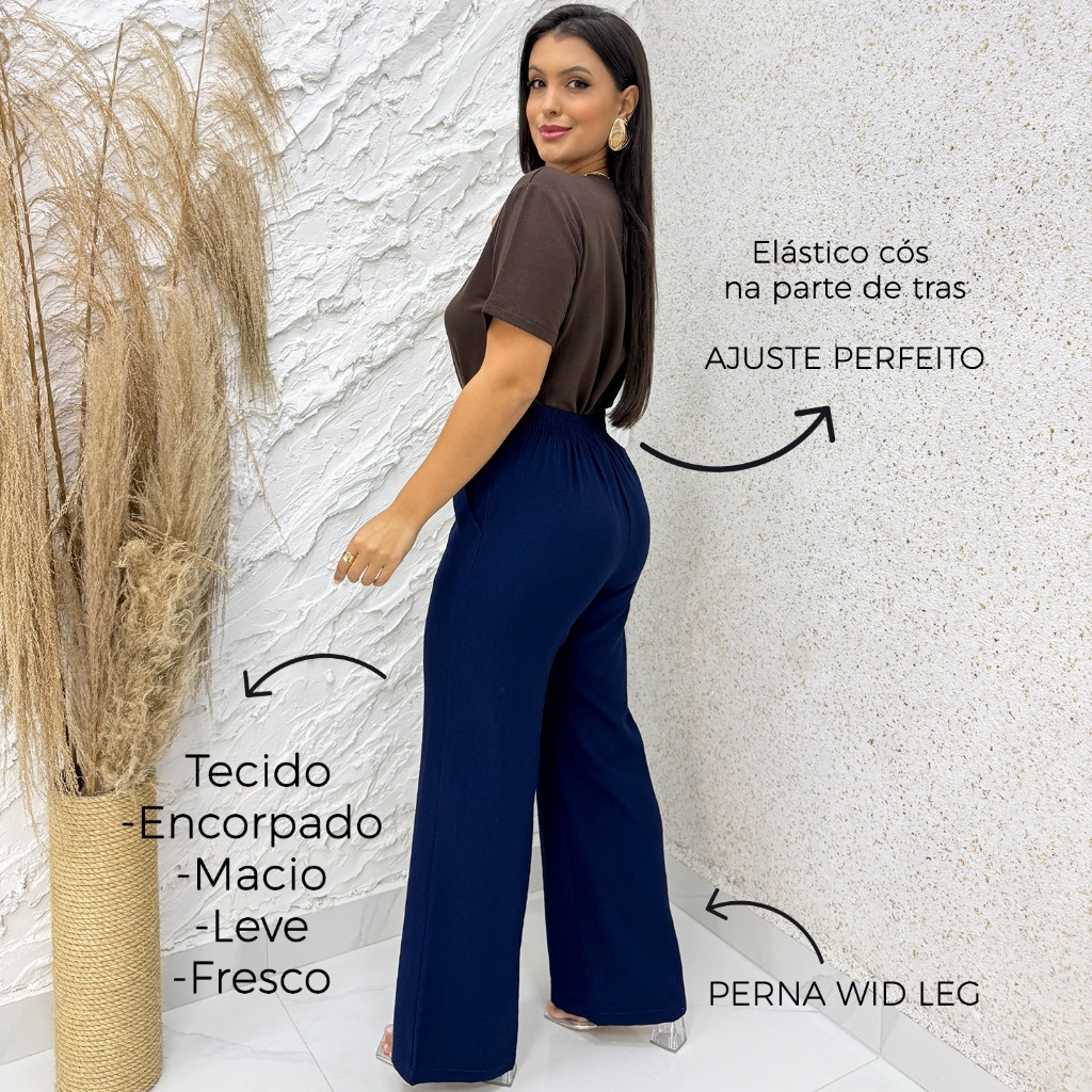 Calça Pantalona Wide Leg Alfaiataria Premium com Bolso e Elástico Costa O mais novo lançamento da nossa marca peças desenvolvidas com qualidade de alto padrão para que nossos clientes se sintam confortáveis e se identifiquem cada vez mais com a nossa marca. Modelo Wide Leg Pantalona com um caimento incrível Paleta de cores atualizada de acordo com a moda atual e das próximas estações. * Tecido alfaiataria premium * Foto real do produto * Elástico na costa AS MEDIDAS SÃO DA CIRCUNFERÊNCIA USE UMA PEÇA DA MESMA PARA TIRAR AS MEDIDAS