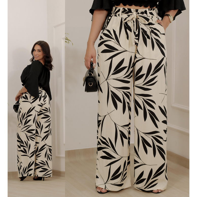 calça femininas pantalona estampada - conforto e estilo com bolso laterais e forro interno
