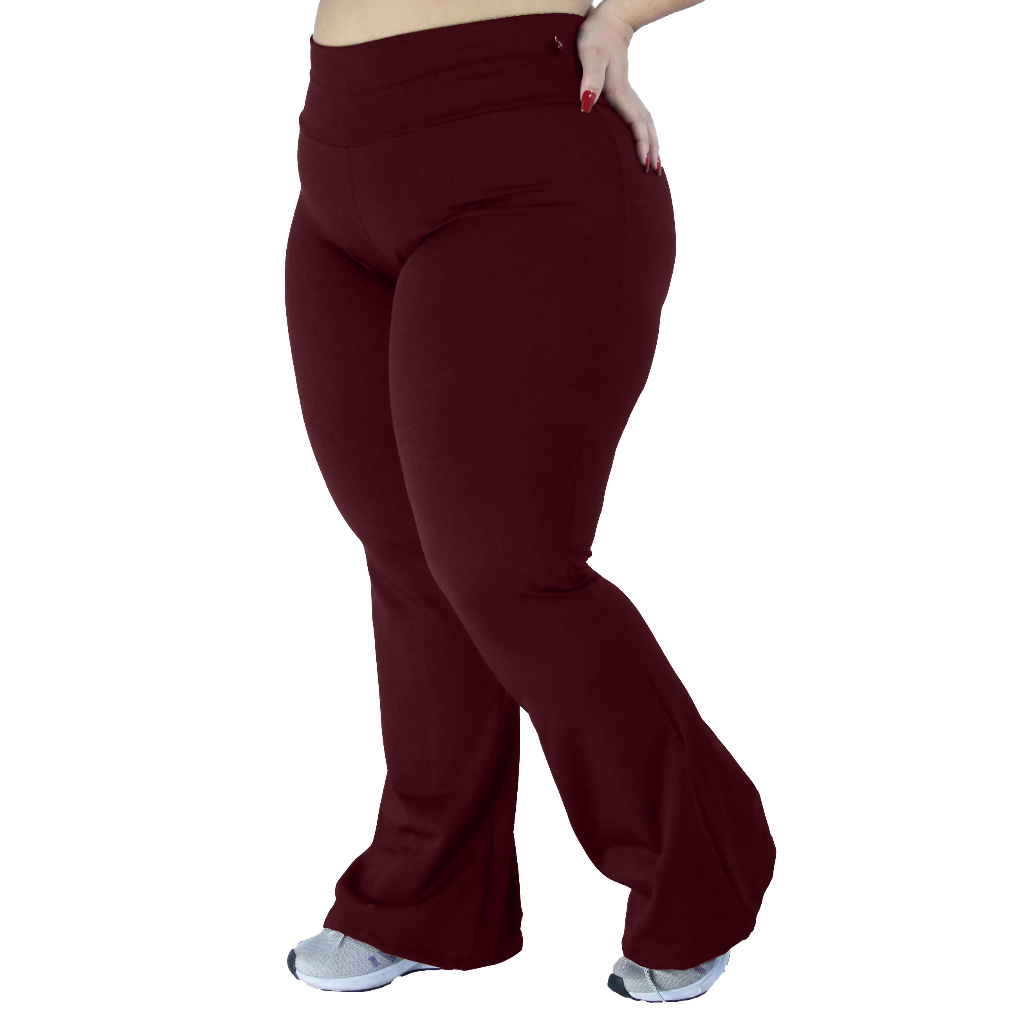 Calça Flare Bailarina Plus Size G1 G2 G3 G4 Cos Bem Alto Em Suplex Poliester WOLFOX