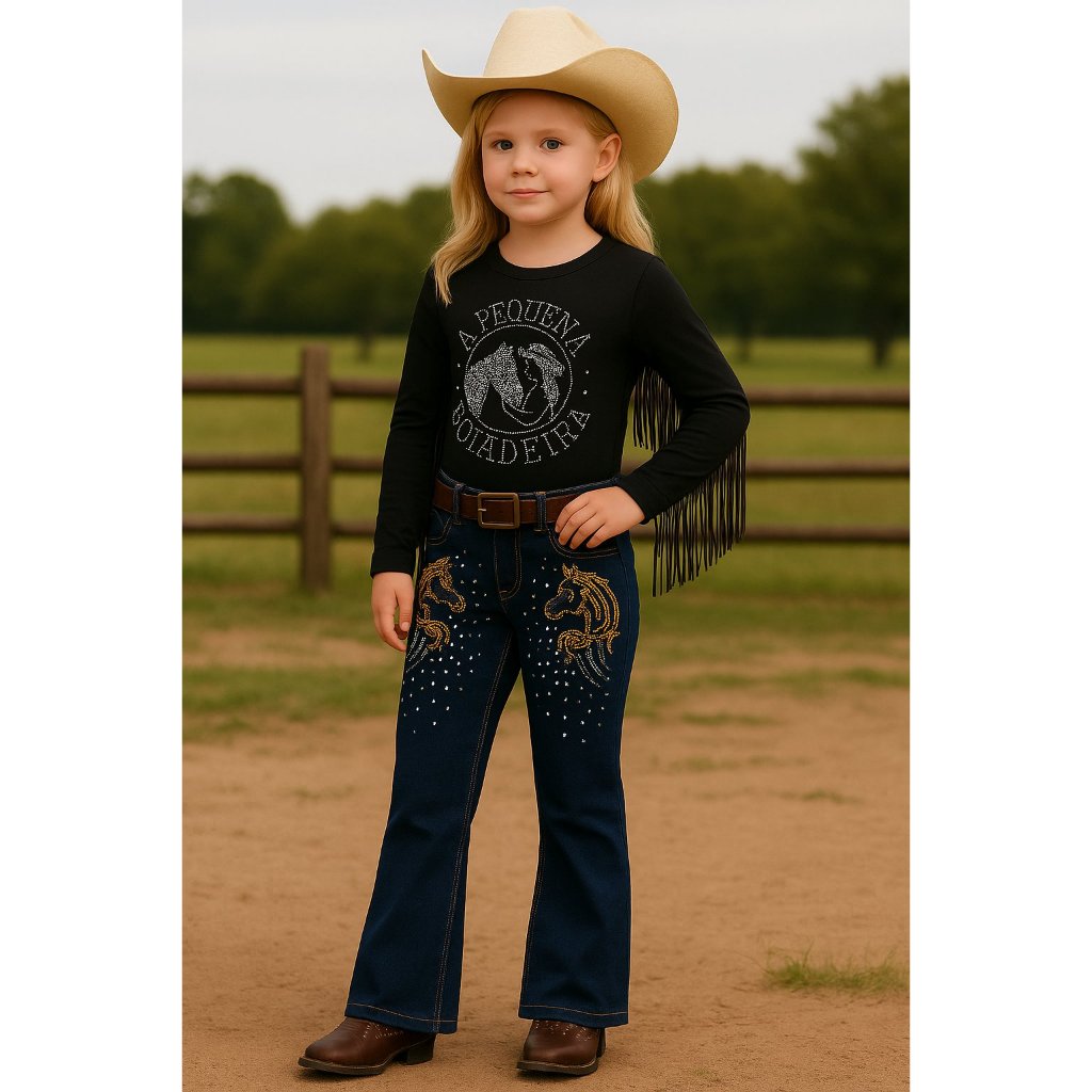 Calça Flare Boiadeira Menina Ana Castela Country com Strass Cavalgada