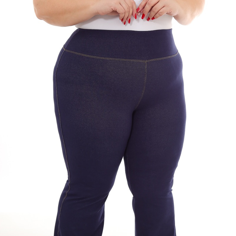 Calça Flare Plus Size Boca de sino Cotton Jeans Fake Com Bolso Do G1 ao G3