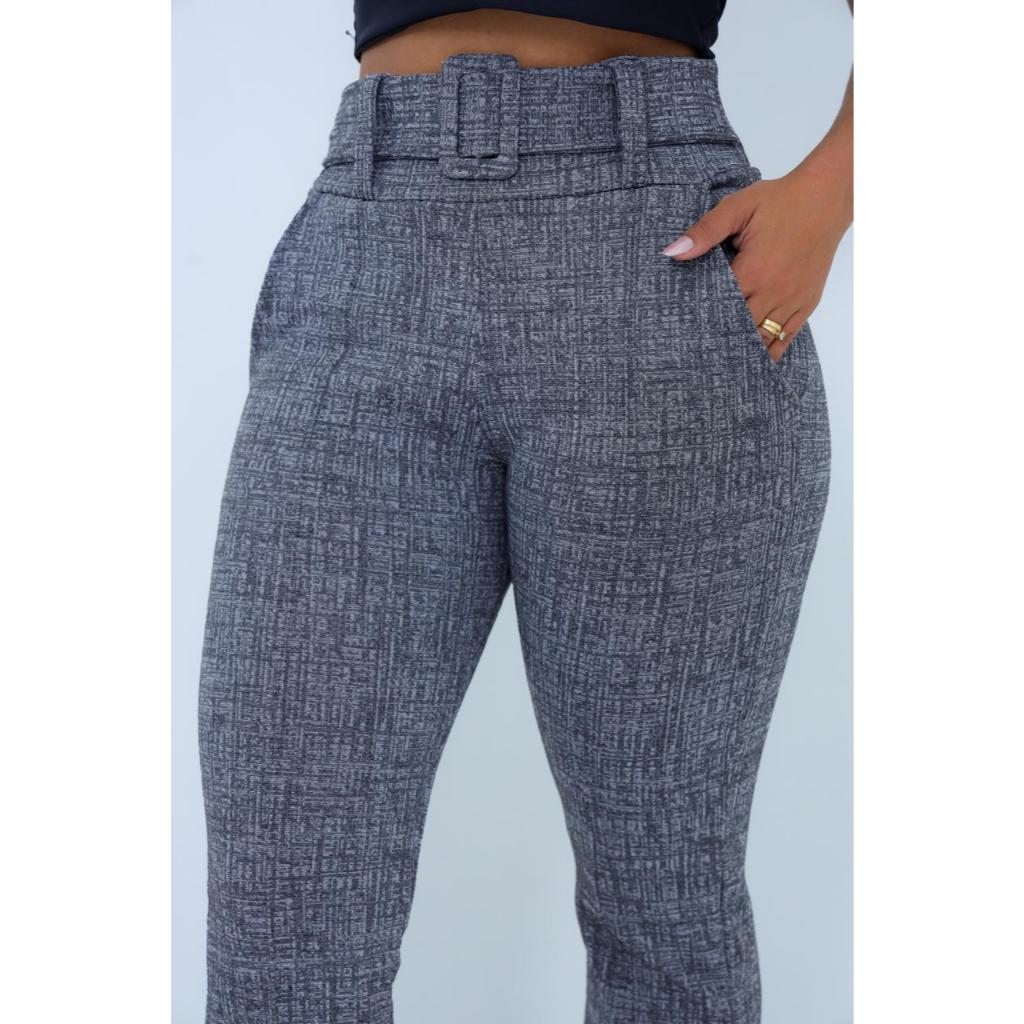 Calça Flare social bailarina jacquard linho com cinto fixo com bastante elastano,cintura
