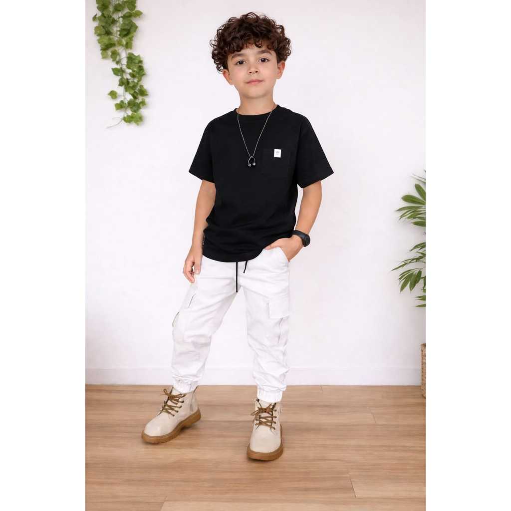 Calça Jogger Infantil Menino, desenvolvida em uma pegada mais espojada e esportiva. A modelagem jogger possui uma estrutura reta e cós baixo, composto por dois bolsos frontais e dois posteriores e dois bolsos cargo, o cós possui elástico embutido com cordão para ajuste e a barra tem acabamento com elástico embutido, dando maior praticidade e conforto. Peça ideal para curtir a estação com muito conforto, invista! Se você não abre mão de um look sempre bem espojado no dia a dia e conforto do seu filho, esse modelo de calça é perfeito para você. Ø Modelagem: Infantil Ø Tamanhos: do 04 ao 16 Cores : Preto - Bege - Jeans Escuro e Jeans Medio A Tabela de Medidas Se Encontra na Terceira Foto do anuncio de cada cor da uma conferida antes de fazer o seu pedido, assim conseguimos enviar corretamente seu pedido.