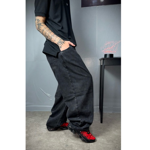Calça Jeans Baggy Preto-Marmorizado Estonado Dazzling Original Sportlife