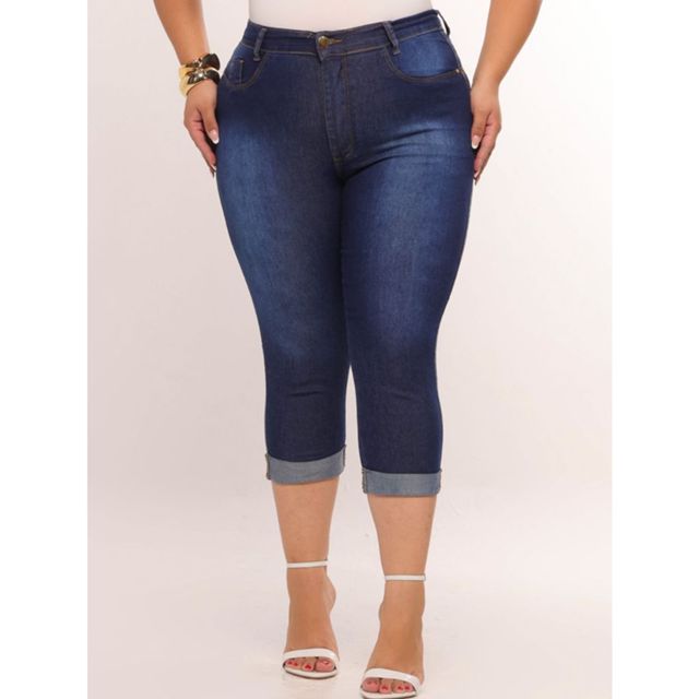 Calça Jeans Capri Feminina Plus Size Cintura Alta Empina Bumbum Modeladora Curve Moda Maior