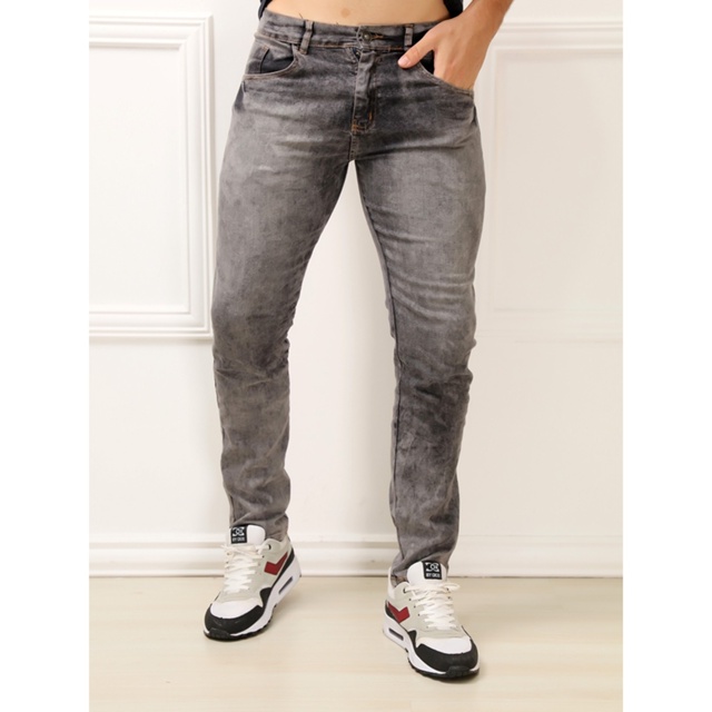 Calça jeans cinza lavada manchada slim TOP