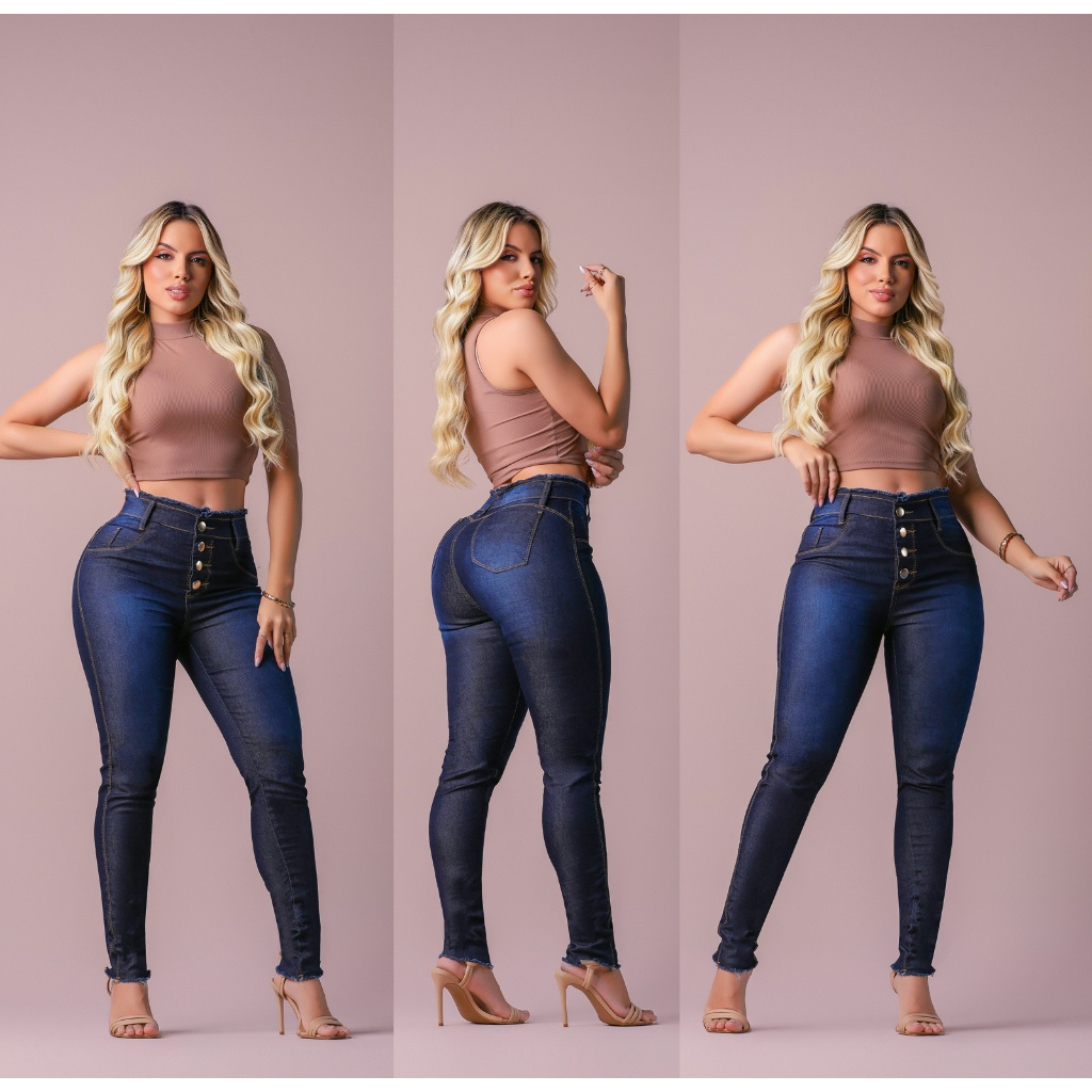 Calça jeans feminina com lycra empina bumbum skynny