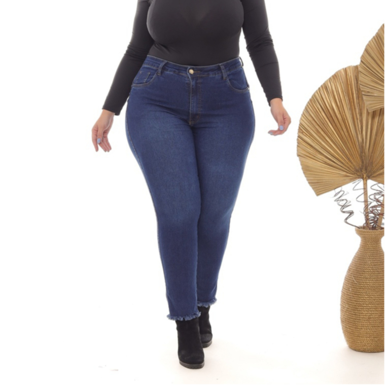 Calça Jeans Feminina Plus Size Cigarrete Lavagem Escura Alta Qualidade Conforto e Versatilidade
