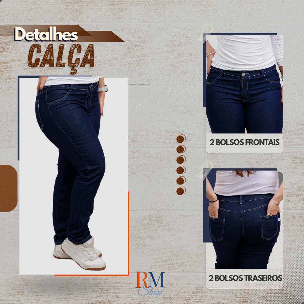 Bem vindos à RM Confecções, sua loja completa para renovar o guarda-roupa da família. Oferecemos uma ampla variedade de roupas para todos os gostos e idades, com opções de moda masculina, feminina e infantil. Do look casual e confortável ao visual mais sofisticado, temos peças versáteis e de qualidade para cada momento do seu dia. Com um compromisso com o conforto, estilo e preço justo, a RM Confecções é a escolha ideal para quem busca roupas modernas e com ótimo custo-benefício para todas as ocasiões. Na RM Confecções, cada detalhe é pensado para garantir que nossos clientes se sintam confiantes, estilosos e, acima de tudo, confortáveis. Calça Jeans Feminina – Conforto que acompanha seu ritmo. Estilo que valoriza sua forma. Projetada para atender às exigências do uso cotidiano com sofisticação e funcionalidade, a Calça Jeans Feminina alia desempenho têxtil e design ergonômico. Desenvolvida em jeans com elastano de alta qualidade, oferece mobilidade controlada, toque macio e excelente adaptação ao corpo, preservando o formato original mesmo após múltiplos usos e lavagens. Com corte preciso e acabamento técnico, essa peça proporciona caimento ajustado e estrutura reforçada, ideal para quem busca aliar elegância, resistência e liberdade de movimento. Indicada para ambientes urbanos, profissionais ou casuais, a calça se adapta com facilidade a diferentes rotinas, elevando o padrão de conforto e estilo no vestuário feminino. Características: -Modelagem Skinny de Cintura Média: Corte justo ao corpo do quadril até a barra, com cintura média que equilibra sustentação e conforto, valorizando a silhueta de forma natural. -Composição Têxtil Calça Viela Azul (90% Algodão | 9% Poliéster | 1% Elastano) / Composição Calça Bellini Black Preta (78,5% Algodão | 20% Poliéster | 1,5% Elastano): A alta concentração de algodão proporciona maciez, conforto térmico e respirabilidade para uso prolongado. O poliéster reforça a estrutura do tecido, reduzindo amassados e aumentando a resistência ao desgaste por uso e lavagem. O elastano oferece flexibilidade controlada e permite que a peça retorne ao seu formato original sem laceamento, mesmo com o uso diário. -Recuperação Dimensional: A calça mantém seu formato original mesmo após longos períodos de uso e lavagens repetidas, evitando laceamento e deformações -Acabamento de Costura Reforçado: Linhas resistentes e dupla costura em pontos estratégicos (como entrepernas e bolsos), prolongando a vida útil da peça mesmo sob uso intenso. -Bolsos Funcionais: Dois bolsos traseiros e dois frontais com recorte anatômico — espaços úteis que preservam o caimento alinhado da peça. -Passantes de Cinto Estruturados: Permitem o uso seguro com cintos variados, sem danificar a costura ao longo do tempo. -Barra Reta Tradicional: Acabamento limpo e preciso, pronta para uso direto com diversos tipos de calçados — de botas a tênis casuais. -Fechamento em Zíper e Botão Metálico: Sistema prático e durável, com fixação estável e acabamento discreto. Benefícios: -Ajuste Anatômico com Conforto Prolongado: A modelagem e o tecido com elastano trabalham em sinergia para proporcionar uma peça que acompanha os movimentos naturais do corpo sem restringir, ideal para uso contínuo durante todo o dia. -Durabilidade Funcional: Os reforços de costura e a estabilidade estrutural do jeans evitam desgaste precoce, tornando a calça adequada para uso frequente em ambientes urbanos, profissionais ou casuais. -Baixa Manutenção e Alto Desempenho Têxtil: O tecido de fácil cuidado conserva o toque e a aparência mesmo após lavagens domésticas, reduzindo a necessidade de passadoria frequente ou cuidados especiais. -Valorização da Silhueta sem Comprometer a Mobilidade: A estrutura do corte e a elasticidade controlada proporcionam ajuste ao corpo sem compressão excessiva, favorecendo a estética feminina de forma equilibrada e confortável. [GUIA DE MEDIDAS] [36] CINTURA: 72cm | BARRA: 28cm | ENTREPERNA: 0,78cm | QUADRIL: 82cm | COMPRIMENTO: 100cm [38] CINTURA 76cm | BARRA: 28cm | ENTREPERNA: 0,78cm | QUADRIL: 88cm | COMPRIMENTO: 100cm [40] CINTURA: 80cm | BARRA: 30cm | ENTREPERNA: 0,78cm | QUADRIL: 94cm | COMPRIMENTO: 101cm [42] CINTURA: 84cm | BARRA: 30cm | ENTREPERNA: 0,79m | QUADRIL: 100cm | COMPRIMENTO: 104cm [44] CINTURA: 90cm | BARRA: 32cm | ENTREPERNA: 0,80cm | QUADRIL: 106m | COMPRIMENTO: 105cm [46] CINTURA: 94cm | BARRA: 32cm | ENTREPERNA: 0,80cm | QUADRIL: 110cm | COMPRIMENTO: 106cm [48] CINTURA: 98 cm | BARRA: 34cm | ENTREPERNA: 0,80cm | QUADRIL: 118cm | COMPRIMENTO: 106cm [50] CINTURA: 102cm | BARRA: 36cm | ENTREPERNA: 0,80cm | QUADRIL: 122cm | COMPRIMENTO: 106cm Na RM Confecções, a sua satisfação é nossa prioridade. Nossa equipe está sempre pronta para oferecer um atendimento personalizado, tirar suas dúvidas e ajudar você a encontrar as melhores opções para sua família. Seja para escolher a peça perfeita ou para qualquer outra necessidade, estamos aqui para garantir uma experiência de compra única.