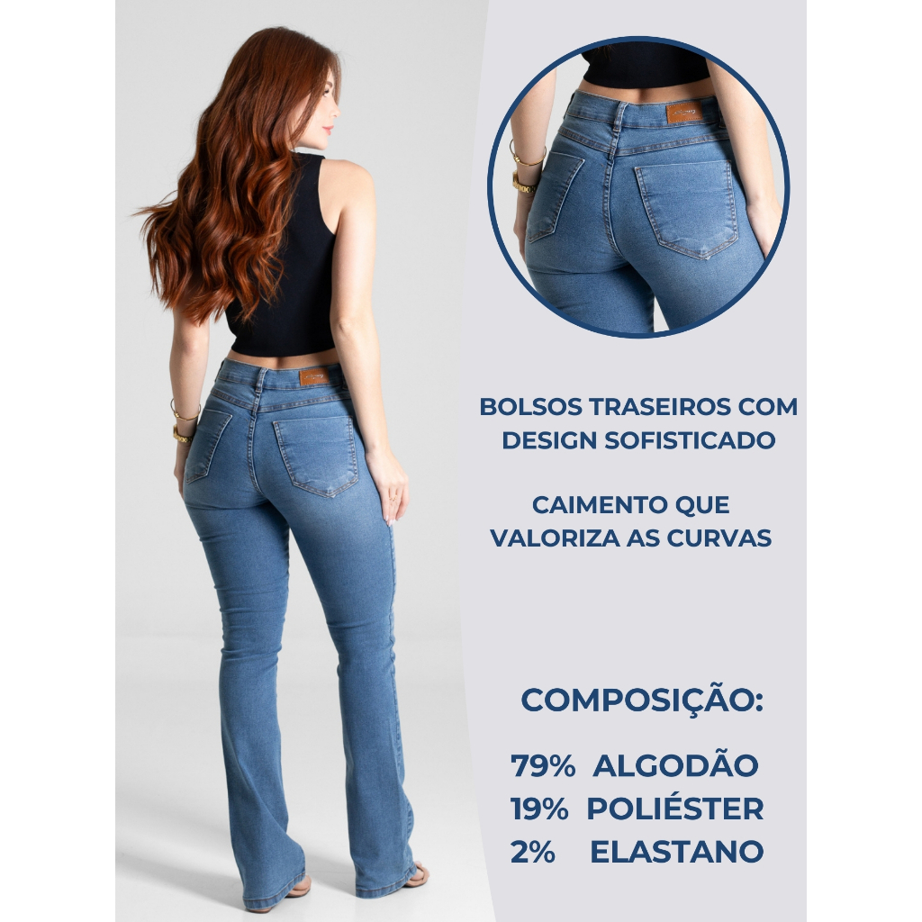 Seja bem vinda, PRODUTO ORIGINAL. Calça Jeans Feminina Sawary Jeans – Modelo boot cut Azul Aço Se você procura uma peça versátil, moderna e com caimento impecável, essa calça é a escolha certa. A Sawary Jeans, reconhecida como a melhor marca de jeans do Brasil, desenvolveu o modelo boot cut, que se destaca pela abertura na barra – muito similar a flare – proporcionando um visual elegante e sofisticado. Sua lavagem em azul aço traz modernidade e combina com diferentes estilos, tornando-se uma peça coringa para diversas ocasiões. Composição do tecido: 79% Algodão – proporciona respirabilidade e conforto para o uso diário. 19% Poliéster – garante maior resistência, evitando deformações e prolongando a durabilidade da peça. 2% Elastano – confere elasticidade na medida certa, oferecendo liberdade de movimentos e um ajuste perfeito ao corpo. 112 cm de comprimento. Essa combinação resulta em uma calça confortável, resistente e que mantém a forma por muito mais tempo. A cintura alta valoriza as curvas de maneira natural, alonga a silhueta e garante um caimento impecável em qualquer corpo. É uma calça extremamente versátil: use no trabalho, em passeios ou em momentos casuais. Combine facilmente com camisas, blusas ou até mesmo um look mais despojado com camiseta e tênis. Além da beleza, é uma peça feita para durar anos no seu guarda-roupa, sempre com a qualidade já conhecida da Sawary Jeans. Invista em um jeans que une estilo, conforto e durabilidade. Essa é a calça que vai transformar seus looks e se tornar indispensável no seu dia a dia.