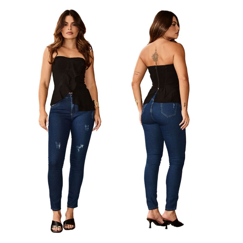 Calça jeans feminina skinny justa e moderna perfeita para o dia a dia ref.414