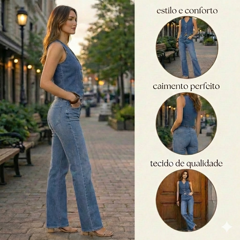 ✨ Calça Jeans Feminina Wide Leg Cintura Alta A calça ideal para quem busca estilo, conforto e versatilidade no dia a dia. Com modelagem wide leg e cintura alta, valoriza a silhueta e garante um visual moderno e elegante para diversas ocasiões. Confeccionada em jeans de alta qualidade, possui excelente caimento, toque macio e ótimo acabamento. Combina facilmente com camisetas, croppeds, camisas ou jaquetas, sendo perfeita tanto para looks casuais quanto urbanos.