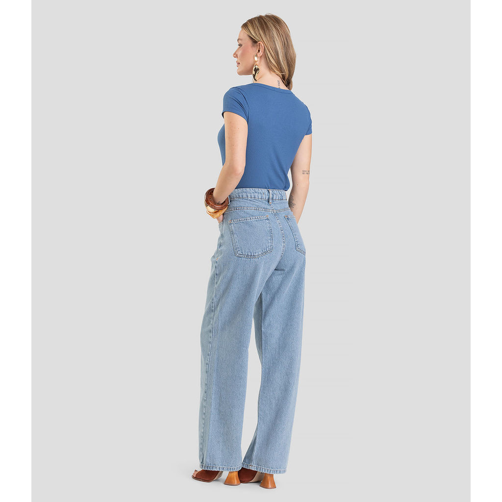 Calça Jeans Feminina Wide Leg Cintura Alta Dianna Azul