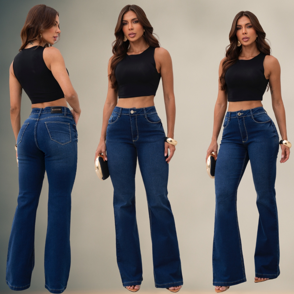 Calça Jeans Flare Feminina Premium Cintura Alta Ajuste Perfeito Alongadora Confortável