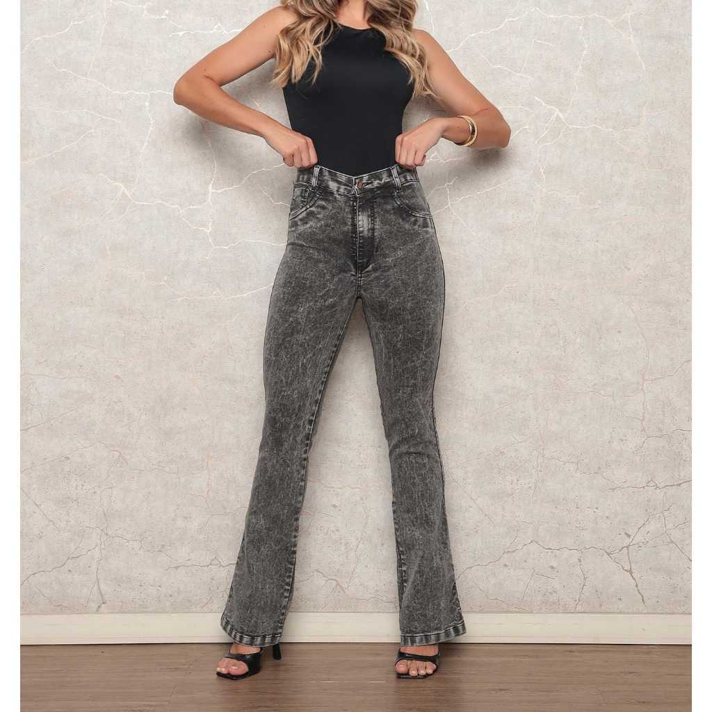 Calça Jeans flare grafite Feminina Cos Alto Levanta Bumbum elastano 3%