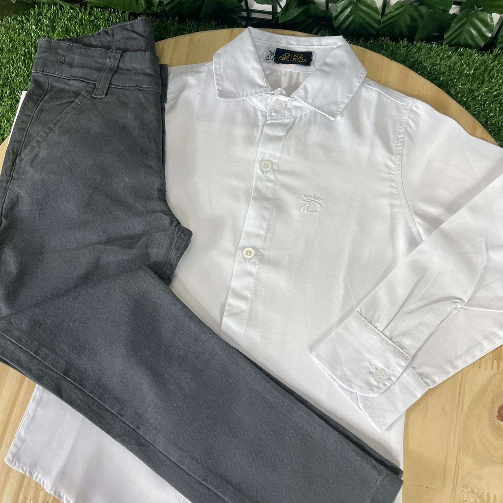 | Calça Jeans Grafite com Camisa Manga Longa Branca Infantil Batizado... este produto | R$ 119,90 | — | 4.8/5 | 5 |