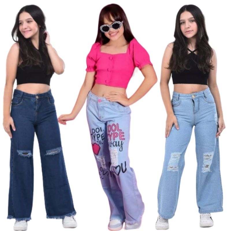 Calça Jeans Infantil Wide Leg Pantalona.